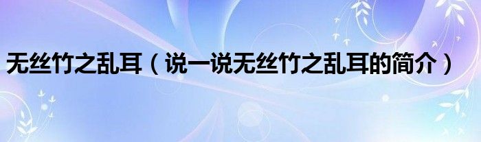 无丝竹之乱耳(说一说无丝竹之乱耳的简介)