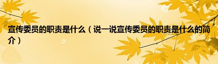 夏弥来为大家解答以下的问题,宣传委员的职责是什么,说一说宣传委员的职责是什么的简介,现在让我们一起来看看吧!