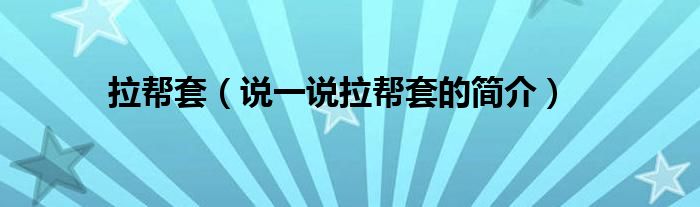 夏弥来为大家解答以下的问题,拉帮套,说一说拉帮套的简介,现在让我们一起来看看吧!