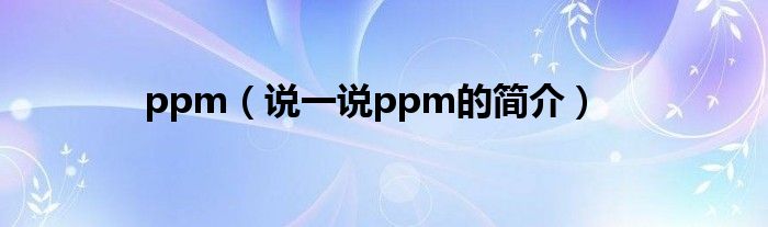 ppm(说一说ppm的简介)