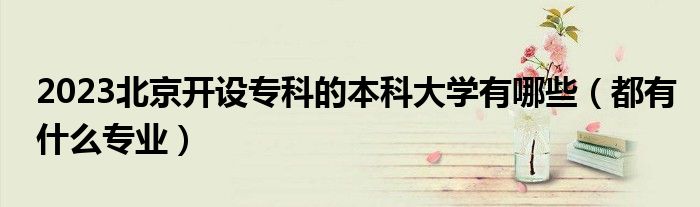 大家好,乐儿来为大家解答以下问题,2023北京开设专科的本科大学有哪些,都有什么专业很多人还不知道,现在让我们一起来看看吧!