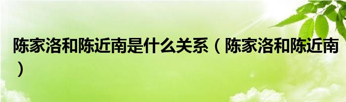 陈家洛和陈近南是什么关系(陈家洛和陈近南)