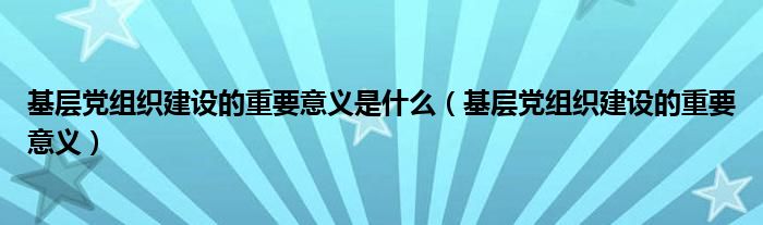 基层党组织建设的重要意义是什么(基层党组织建设的重要意义)