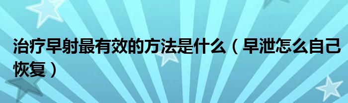 治疗早射最有效的方法是什么(早泄怎么自己恢复)