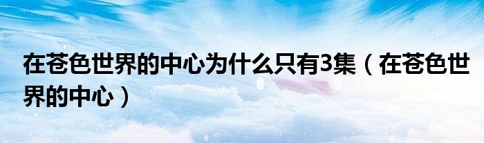 在苍色世界的中心为什么只有3集(在苍色世界的中心)