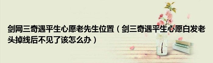 剑网三奇遇平生心愿老先生位置(剑三奇遇平生心愿白发老头掉线后不见了该怎么办)