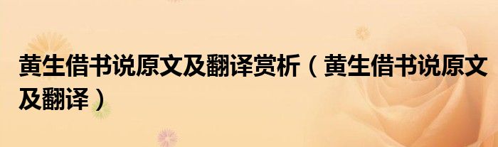 黄生借书说原文及翻译赏析(黄生借书说原文及翻译)