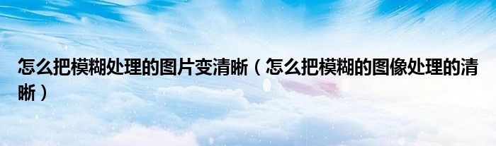 怎么把模糊处理的图片变清晰(怎么把模糊的图像处理的清晰)