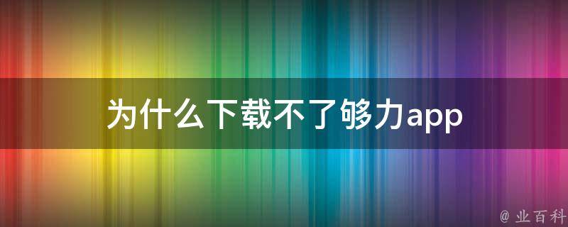 1、不兼容设备:够力App可能只能在特定的操作系统版本或设备上运行,请确保设备满足应用程序的最低系统要求。如果设备不符合最低要求,可能无法下载或安装该应用程序。