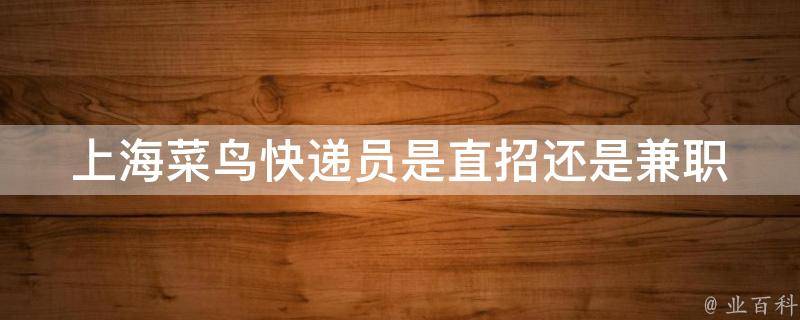 上海菜鸟快递员是直招。菜鸟直送直招快递员,工作地点在上海,职务范围是为上海市各地的天猫超市提供直送服务,这次扩招引发关注,是因为菜鸟直送很舍得下血本。要求工作认真、吃苦耐劳、服从管理,自备交通公具电动车或面包车,工资计件制多劳多得。