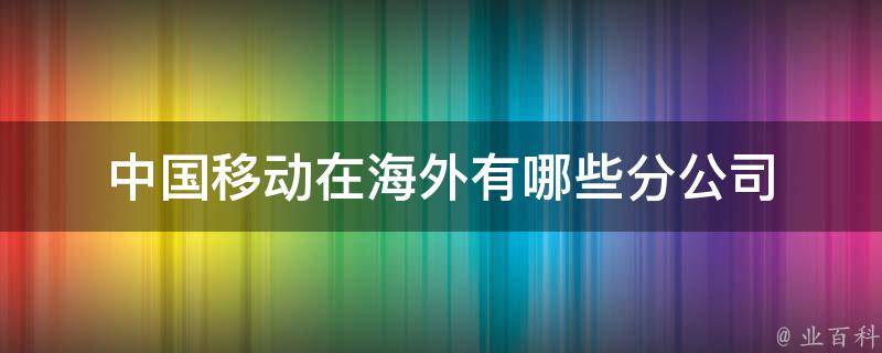 1、移动国际有限公司:作为中国移动的国际业务部门,提供海外通信服务和解决方案。