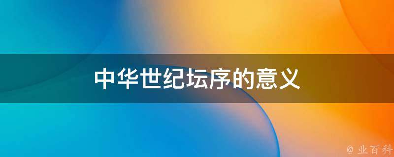 中华世纪坛序的意义是昭示后代的人们中华世纪坛承载了中国的现代化历程和人民的希望,也是中国人民对美好未来的向往。中华世纪坛序长9米、高1.05米、重34.6吨,位于中华世纪坛南面入口处,正面刻着中华世纪坛,背面为中华世纪坛序,是世界上最大的一块汉白玉。