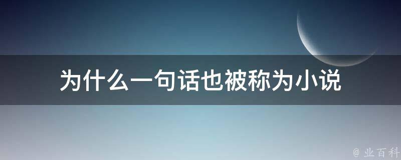 一句话不被称为小说。小说是一种长篇虚构故事,通常包含复杂的情节和多个角色,它是一种完整的文学体裁,通过描绘人物的生活、冲突和发展来呈现故事。相比之下,一句话只是一个简短的表述或陈述,通常由一句完整的语句组成。它可能是一个观点、一个问题、一句名言或一个简明的描述。因此,一句话和小说在长度、内容和形式上有很大的区别,它们属于不同的文学形式。