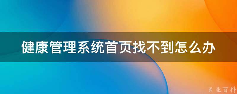 4、咨询支持:如果尝试了以上方法仍然无法找到首页,建议联系系统管理员、技术支持或健康管理系统的提供商,向他们寻求帮助。他们将能够提供更具体的指导和解决方案。