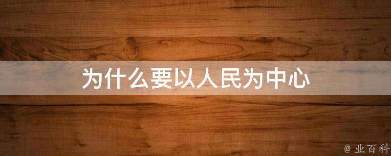 为什么要以人民为中心