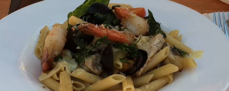 螺旋面100g、西兰花、胡萝卜、海鲜蔬菜酱料理包、橄榄油盐。