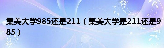 1、集美大学不是211也不是985。