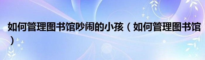 如何管理图书馆吵闹的小孩(如何管理图书馆)