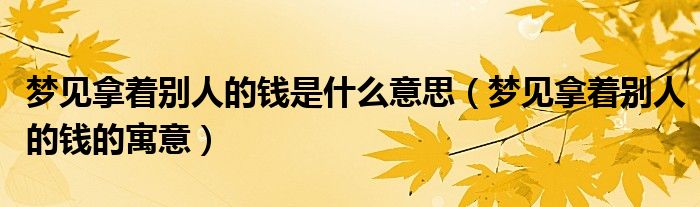 各位网友们好,我是编辑小虎,为大家解答梦见拿着别人的钱是什么意思,梦见拿着别人的钱的寓意问题。一起往下看看