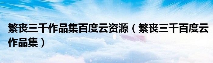 大家好,小联来为大家解答以上的问题。繁丧三千作品集百度云资源,繁丧三千百度云作品集这个很多人还不知道,现在让我们一起来看看吧!