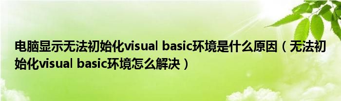 关于电脑显示无法初始化visual basic环境是什么原因,无法初始化visual basic环境怎么解决这个很多人还不知道,今天菲菲来为大家解答以上的问题,现在让我们一起来看看吧!