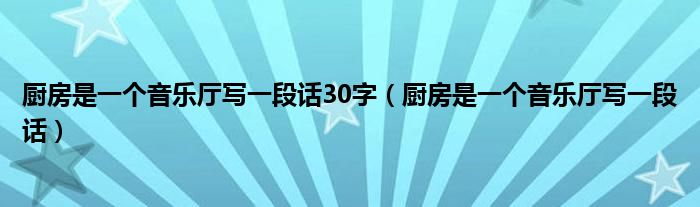 大家好,小联来为大家解答以上的问题。厨房是一个音乐厅写一段话30字,厨房是一个音乐厅写一段话这个很多人还不知道,现在让我们一起来看看吧!