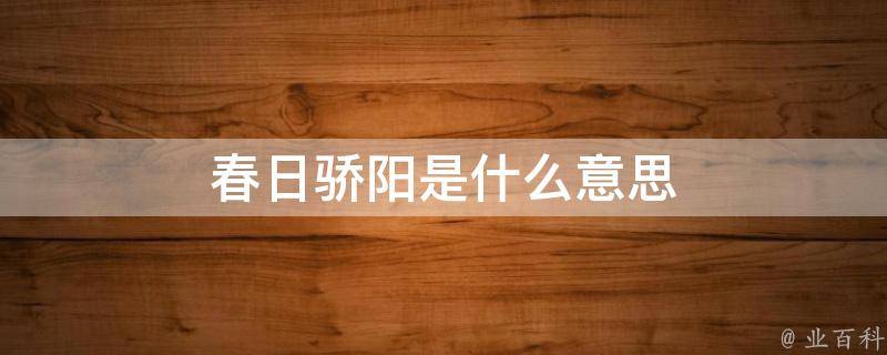 春日骄阳意思是春天的阳光十分灿烂,光彩夺目。骄阳是形容一种天气条件,通常指高温、干燥,天空阳光充足,阴雨少、晴暑多,并且持续一段时间。这种天气模式可能会导致人们在阳光下中暑和脱水,以及一些作物的凋谢和死亡等负面影响。