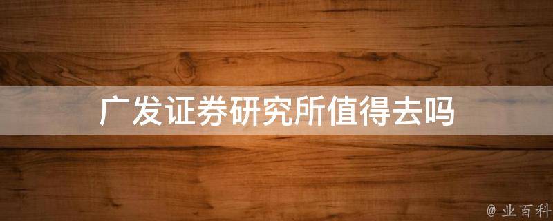 视情况而定。具体取决于个人的需求和职业规划。广发证券研究所是一家提供金融市场研究服务的专业机构,其研究范围涵盖了各个行业和领域。如果对于金融市场和证券投资有兴趣,想从事研究和分析方面的工作,那么加入广发证券研究所可能是一个不错的选择。