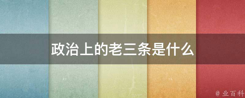 政治上的老三条是:爱国统一战线组织;中国共产党领导的多党合作和政治协商的重要机构;发扬社会主义民主的重要形式。2018年3月15日,中国人民政治协商会议第十三届全国委员会第一次会议通过《中国人民政治协商会议章程修正案》修订,对政协性质定位,在老三条的基础上又加了新三条,即:政协是国家治理体系的重要组成部分;政协是具有中国特色的制度安排;政协是专门的协商机构。