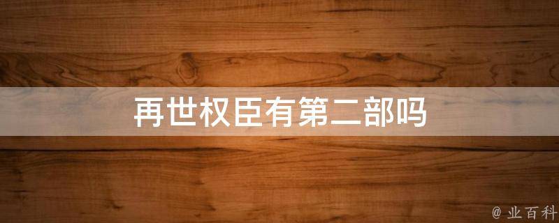 再世权臣有第二部吗