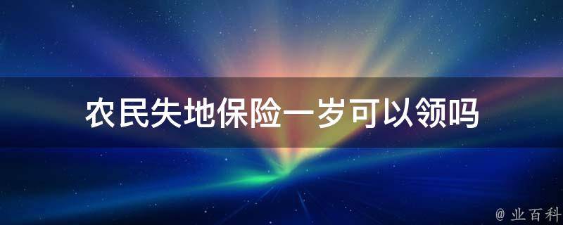 农民失地保险一岁不可以领。失地保险是指在城市建设和扩张过程中,政府为了征收土地而给予农民的一种金融补偿措施。根据国家有关规定,失地农民在年满60周岁后可以开始领取失地保险金。