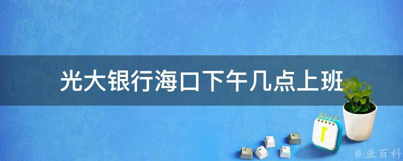 视情况而定。光大银行海口通常是下午两点半上班,五点下班。需要注意,不同地区的光大银行分行可能会有不同的工作时间安排。如果需要更详细的信息,建议直接联系所在地区的中国光大银行。