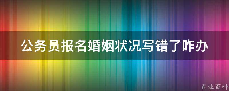 公务员报名婚姻状况写错了不会影响资格审查。公务员报名信息填写有误但是审核通过后,关键信息没有填错就没什么问题,通常主要审查报考资格、学历、专业、年龄等是否符合条件,婚姻状况填错问题不大,解释下即可。