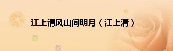 大家好,我是小科,我来为大家解答以上问题。江上清风山间明月,江上清很多人还不知道,现在让我们一起来看看吧!