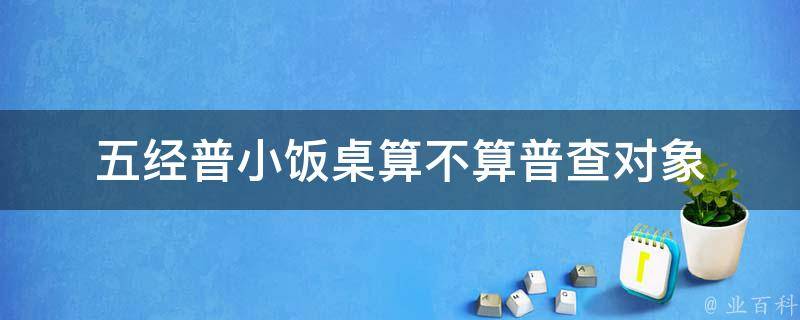 五经普小饭桌算普查对象。五经普指的是第五次经济普查,普查的对象是在从事第二产业和第三产业的全部法人单位、产业活动单位和个体经营户。具体范围包括:采矿业、制造业、建筑业、批发和零售业、交通运输、仓储和邮政业、住宿和餐饮业、信息传输等。