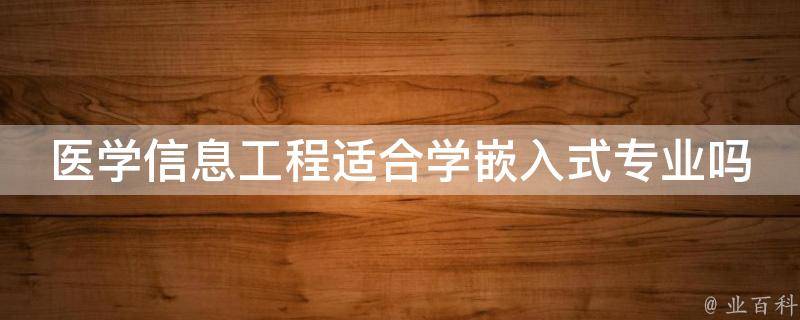 医学信息工程适合学嵌入式专业。嵌入式系统在医疗仪器领域有广泛的应用,从诊疗设备到数据存储服务器和接口软件,都离不开嵌入式系统的支持。同时,嵌入式系统可以为医疗仪器设备设计、生产和使用提供先进的技术支持,为医疗仪器领域的发展和创新提供重要帮助。