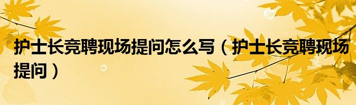 大家好,我是小科,我来为大家解答以上问题。护士长竞聘现场提问怎么写,护士长竞聘现场提问很多人还不知道,现在让我们一起来看看吧!