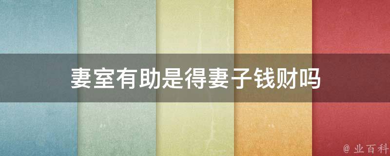 妻室有助不是得妻子钱财,妻室有助是夫妻二人一起努力,相互扶持,就能更容易地达到目标的意思。其中,妻室指的就是妻子,即夫妻之间相互搭配、相互协作就能更快地达成目标和成功。这个短语常常被用在鼓励夫妻之间相互支持、合作以达成共同目标的语境中。