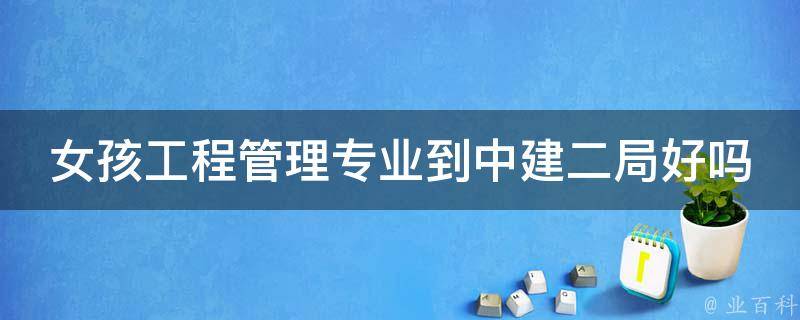 女孩工程管理专业到中建二局好。中建二局属于央企,工作稳定,且工资属于中上水平,待遇很好。工程管理专业以后的就业方向主要有两种:一种是去甲方,另一种是去乙方。去甲方的同学主要从事的是造价、预结算、合约管理、材料采购、物资管理、工程管理、工程档案管理等岗位;去乙方的同学主要从事的是造价、预结算、合约管理、材料采购、物资管理、工程管理等岗位。