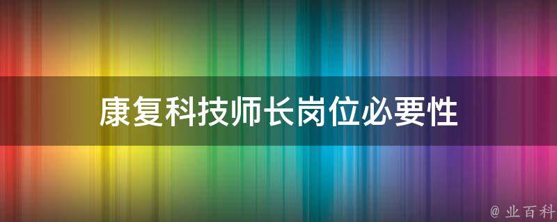 康复技师长岗位的设置对于康复服务的有效实施是必要的。康复技师长是负责管理和组织康复中心或康复科室康复技师团队的专业人员,该岗位的设置为康复服务提供了有效的组织和领导,确保康复服务的及时性、顺畅性和效果性。他们协调康复技师的工作任务,监督和管理技师团队的职业素养和专业水平,以提供高质量的康复服务。