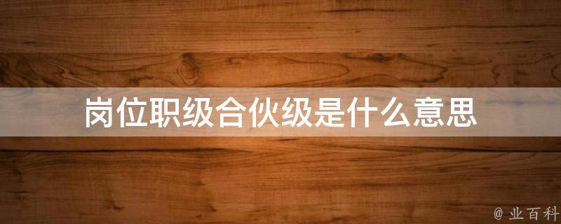 岗位职级合伙级是指员工在岗位上所达到的级别。岗位职级是公司根据岗位的性质、责任、复杂程度等因素,对岗位进行划分,把每一个岗位划分为不同的级别,并赋予每一个岗位对应一个职级。通常情况下,一个岗位只有一个职级,但有的岗位可能有多个职级,职级的多少是根据岗位需要来设置的。