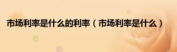 大家好,我是小科,我来为大家解答以上问题。市场利率是什么的利率,市场利率是什么很多人还不知道,现在让我们一起来看看吧!