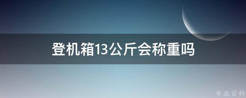 最佳答案登机箱13公斤会称重。乘坐国内航班时,随身携带的手提行李总重量不要超过5公斤,超过规定件数、重量或体积的限制,航空公司将要求行李进行托运。乘坐国际航班时,手提行李总重量不要超过7公斤,每件行李体积不超过20*40*55厘米(三边之和不超过115厘米)。
