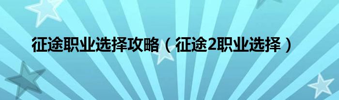 征途职业选择攻略(征途2职业选择)