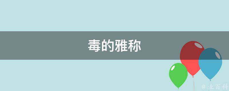 毒的雅称有:斑蝥、砒石、蟾酥、洋金花、轻粉、雄黄、砒霜、水银、生马钱子、生川乌、生草乌、生附子、生白附子、生半夏、生天南星、生巴豆、红娘虫、青娘虫、生甘遂、生狼毒、生藤黄、生千金子、闹羊花、生天仙子、雪上一枝蒿、白降丹、红粉。