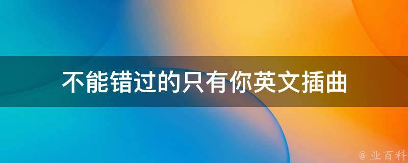 不能错过的只有你英文插曲