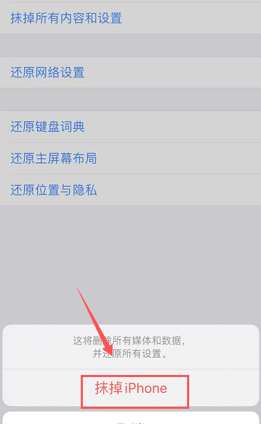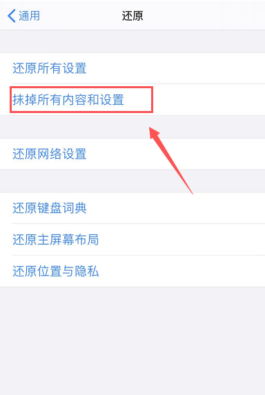 选择抹除所有内容和设置。
