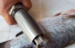 2、再用刮鳞器将鱼身上的鳞片刮除掉,方便做保鲜保质处理。