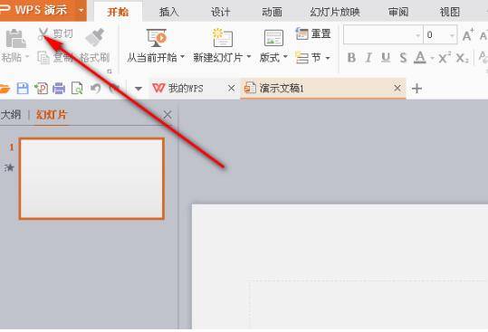 首先在桌面找到需要提取文字的PPT文稿,单击左上角的“wps演示”。