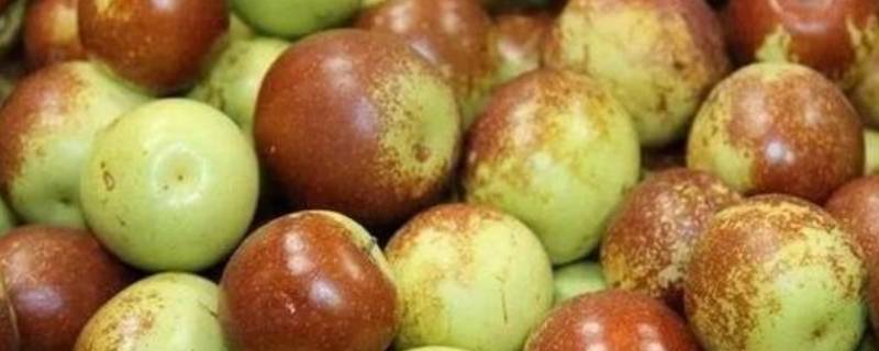 绿色或红褐色。枣皮绿色且没有光泽的是生枣,枣皮是红褐色没有光泽就是未成熟就被摘下捂红的冬枣。